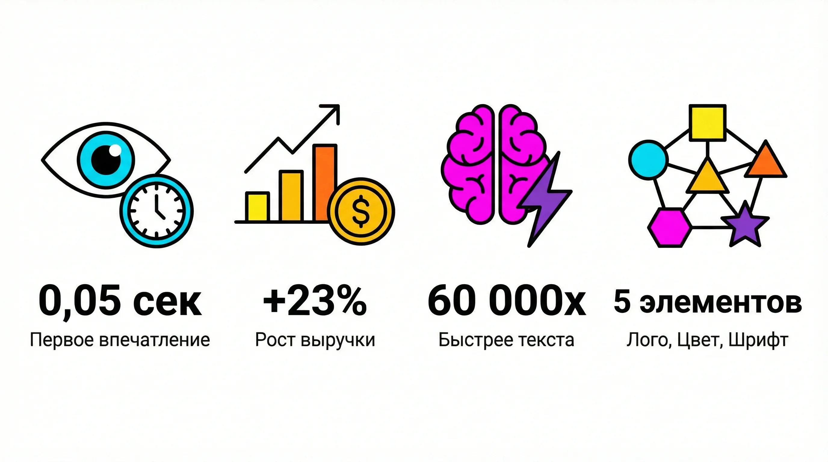 Человеческий мозг обрабатывает визуальную информацию в 60 000 раз быстрее, чем текстовую. И запоминает визуальную информацию в 6 раз лучше. Узнаваемый визуальный стиль — это якорь в памяти клиента, который срабатывает автоматически.