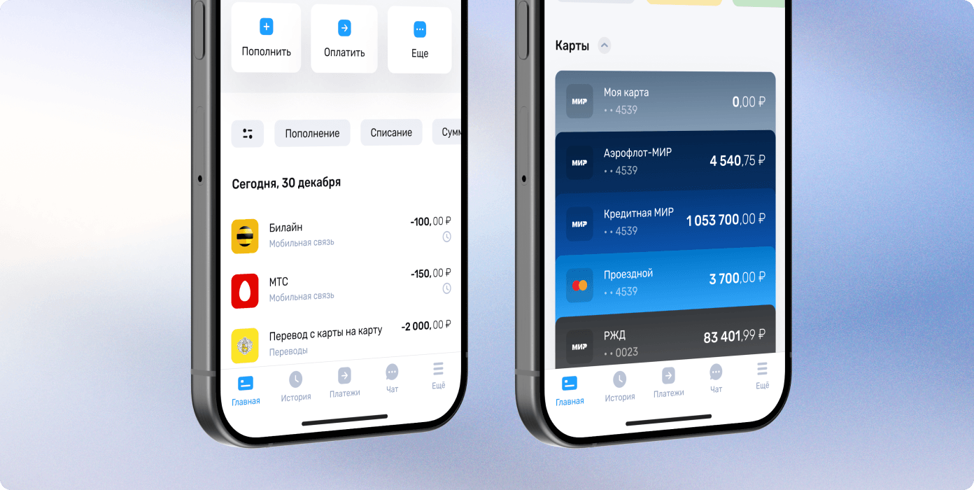 После запуска добавили PWA-версию: она полностью повторяет мобильный UX и работает как страховка в случае санкций от сторов. Дизайн адаптировали под Flutter и разные типы устройств, обновили интерфейсы и сохранили фирменный стиль.