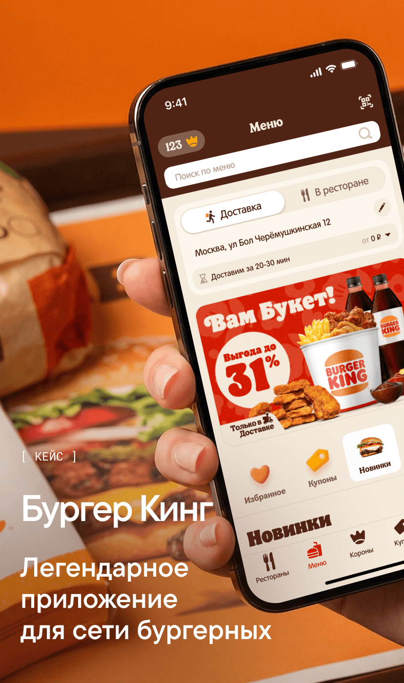 Создали легендарное приложение Бургер Кинг, которое заменило кассиров и стало основным каналом продаж сети. За несколько месяцев превратили его в цифровой ресторан — заказ в пару тапов, умная корзина с рекомендациями и стабильная работа при любой нагрузке.