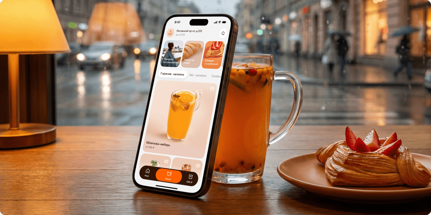 - Важно заказывать быстро и без лишних движений. Гостям нужно сразу видеть любимые напитки или выпечку и оформлять заказ в пару тапов — это напрямую влияет на частоту покупок.