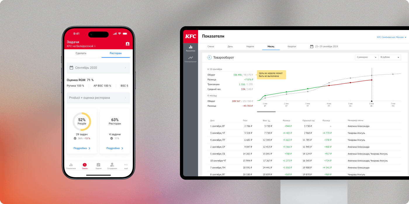 Ещё одна важная задача — дать возможность сотрудникам эффективно работать вне офиса через мобильное приложение и видеть операционные показатели ресторанов в режиме онлайн.