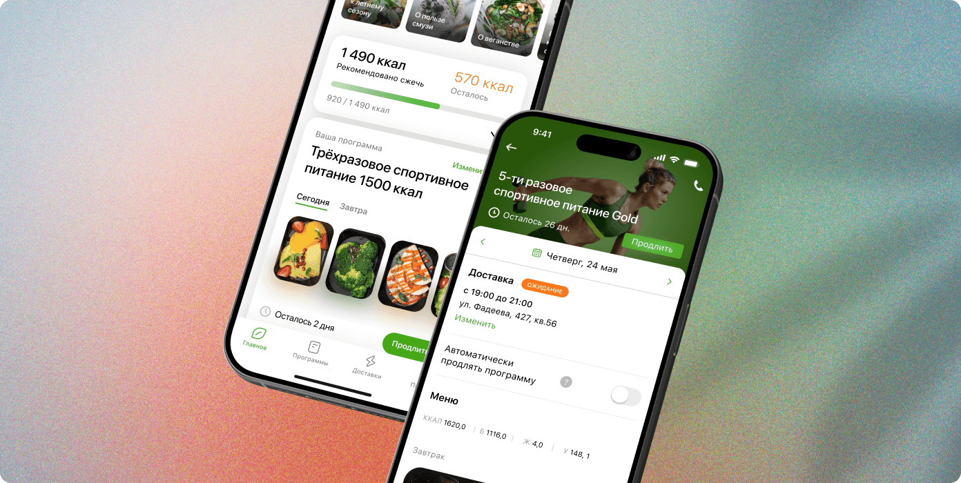 Теперь пользователю не нужно звонить, чтобы поменять место и время доставки, переключиться на другие программы, продлить заказ — это можно сделать в приложении. Новое приложение — это удобный премиальный сервис с аналитикой, фичами для повышения LTV и переиспользуемым дизайном.