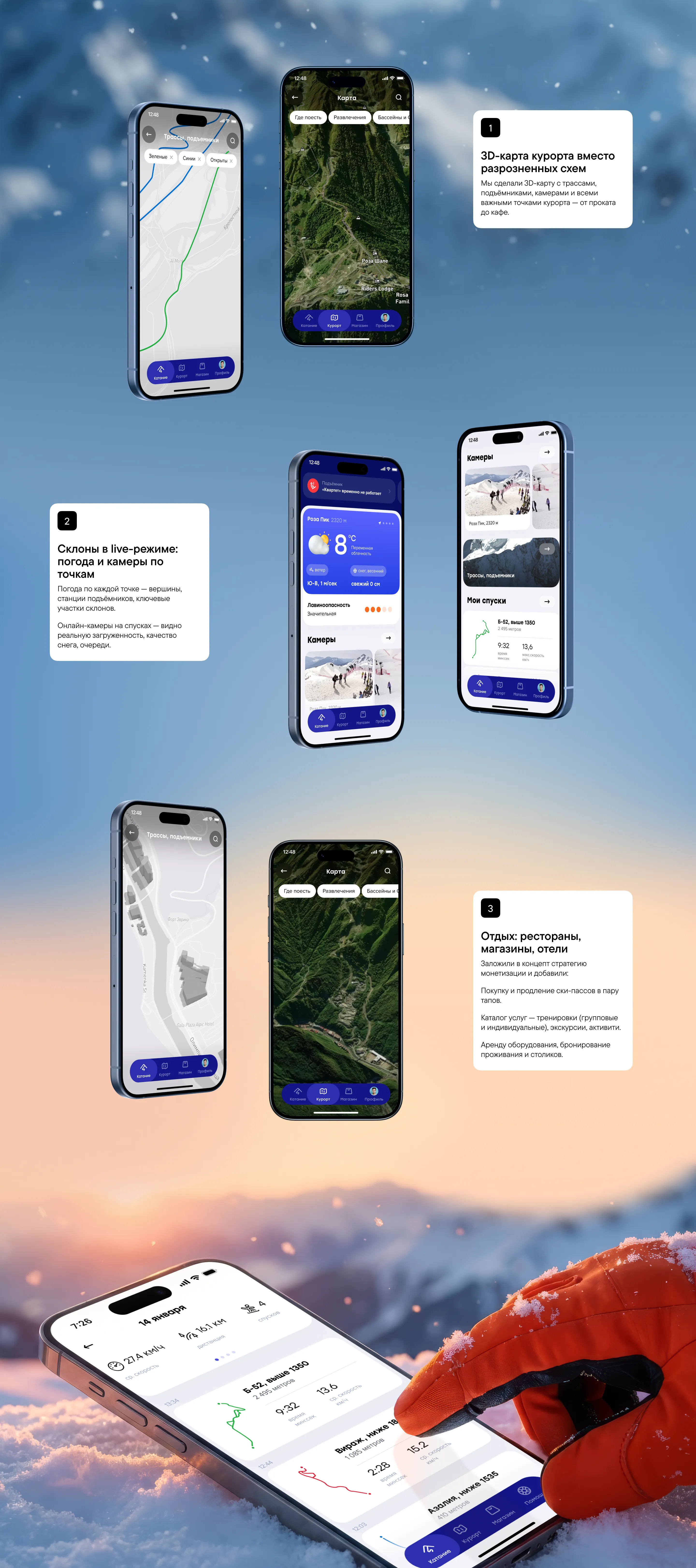 Роза Хутор — курорт высокого уровня, где каждый момент отдыха должен быть комфортным. Сейчас у компании есть только сайт, где разбросаны данные о погоде, трассах и других сервисах — из-за этого люди тратят время отдыха на поиск, стоят в очередях на трассах или подъемниках и разочаровываются.