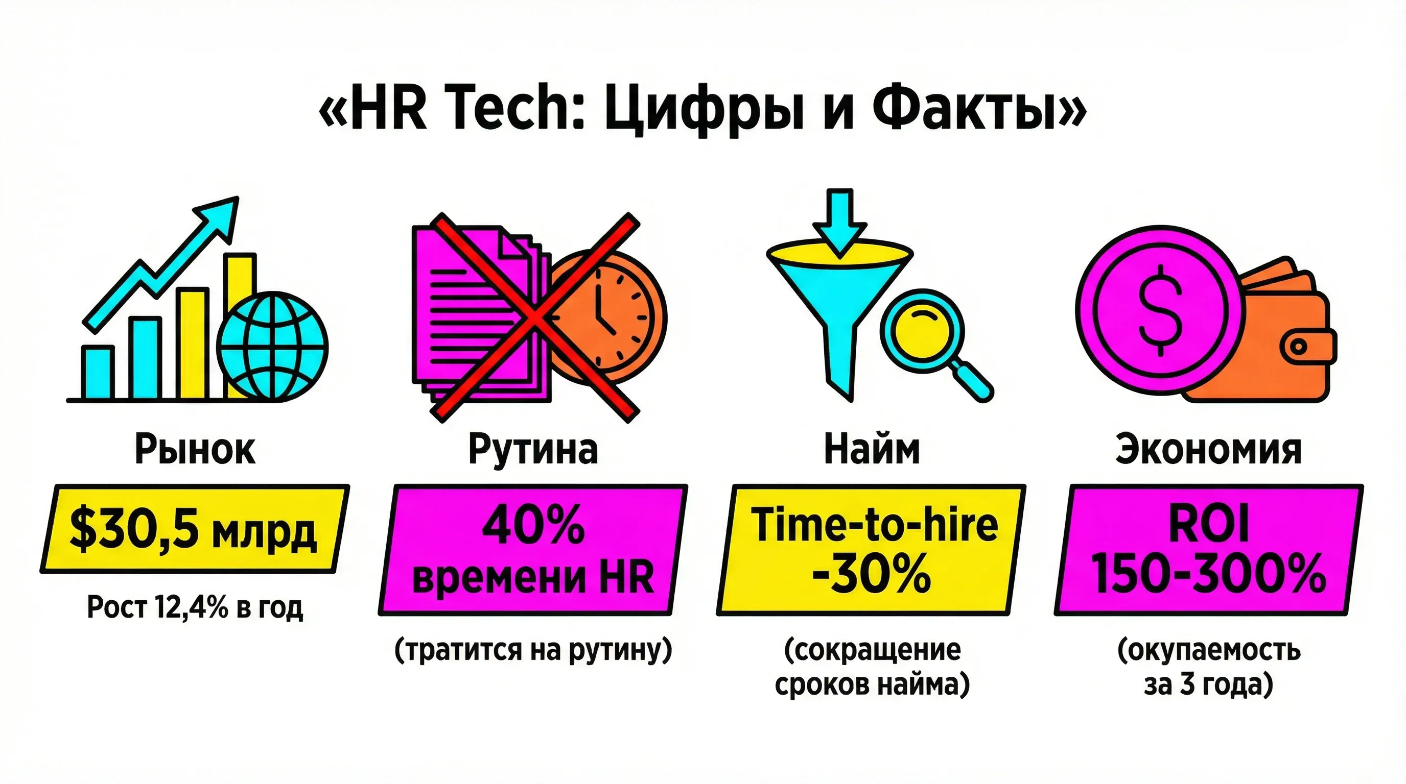 HR Tech — это технологические решения, которые автоматизируют и оптимизируют все этапы работы с персоналом: от найма до увольнения. По прогнозам Grand View Research, глобальный рынок HR-технологий достигнет $56 млрд к 2031 году.
