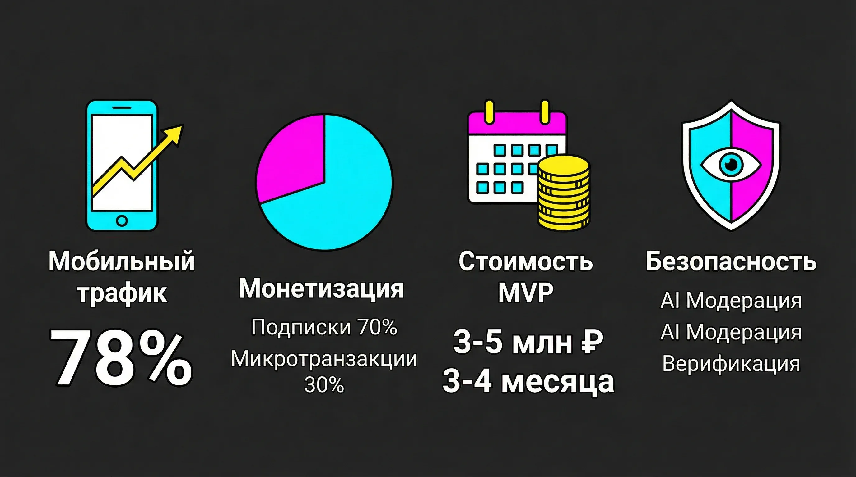 Создать сайт знакомств технически проще, чем мобильное приложение, а для определённых ниш (например, знакомства для старшего поколения) веб-версия даже предпочтительнее. Но успех зависит не только от технологии — важны алгоритмы мэтчинга, безопасность, модерация и модель монетизации.