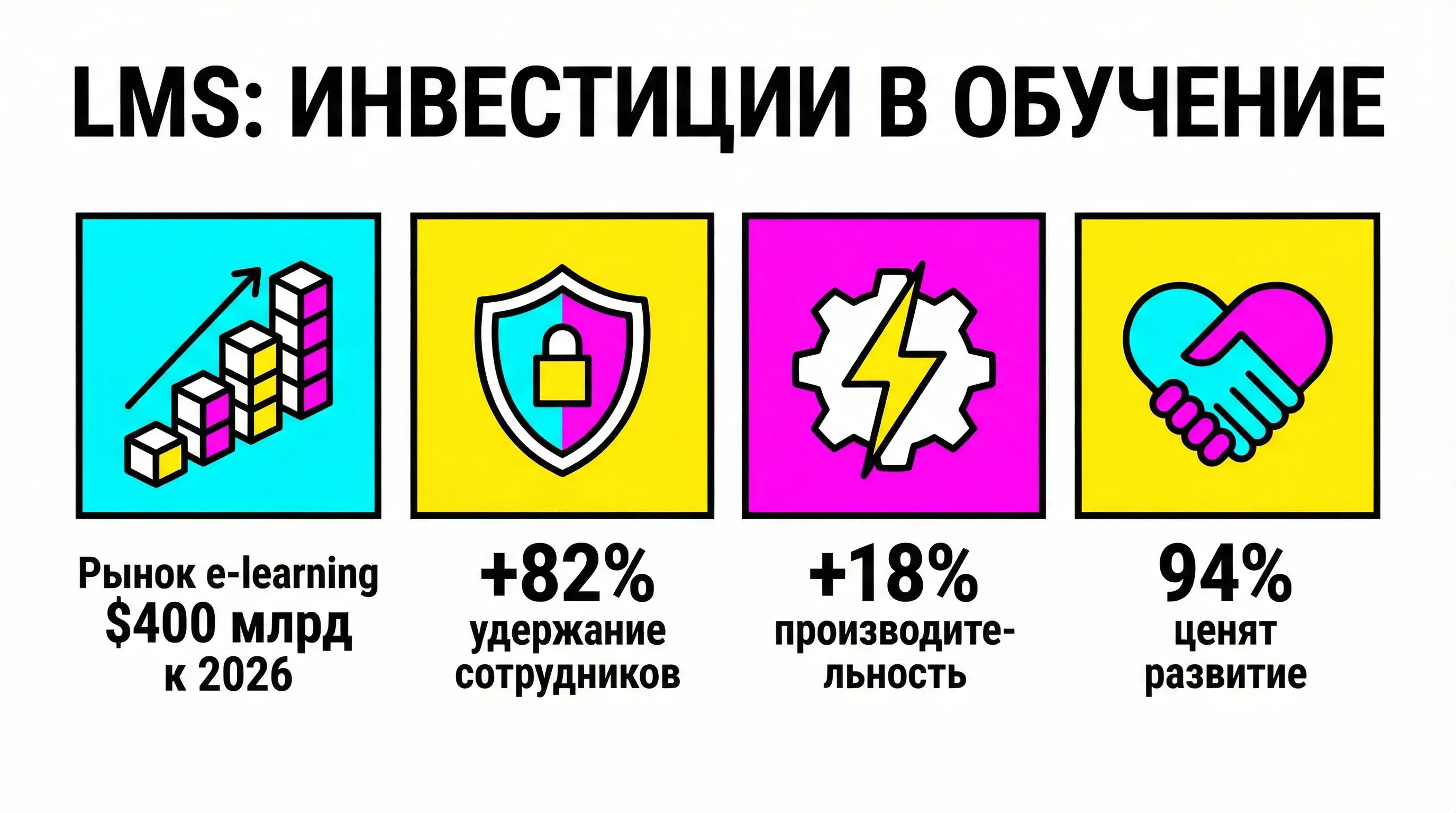 Корпоративное обучение переживает революцию. По данным Statista, глобальный рынок e-learning достигнет $400 млрд к 2026 году — рост почти вдвое за пять лет. Компании осознали: обучение сотрудников — это не расходы, а инвестиции с измеримым ROI.