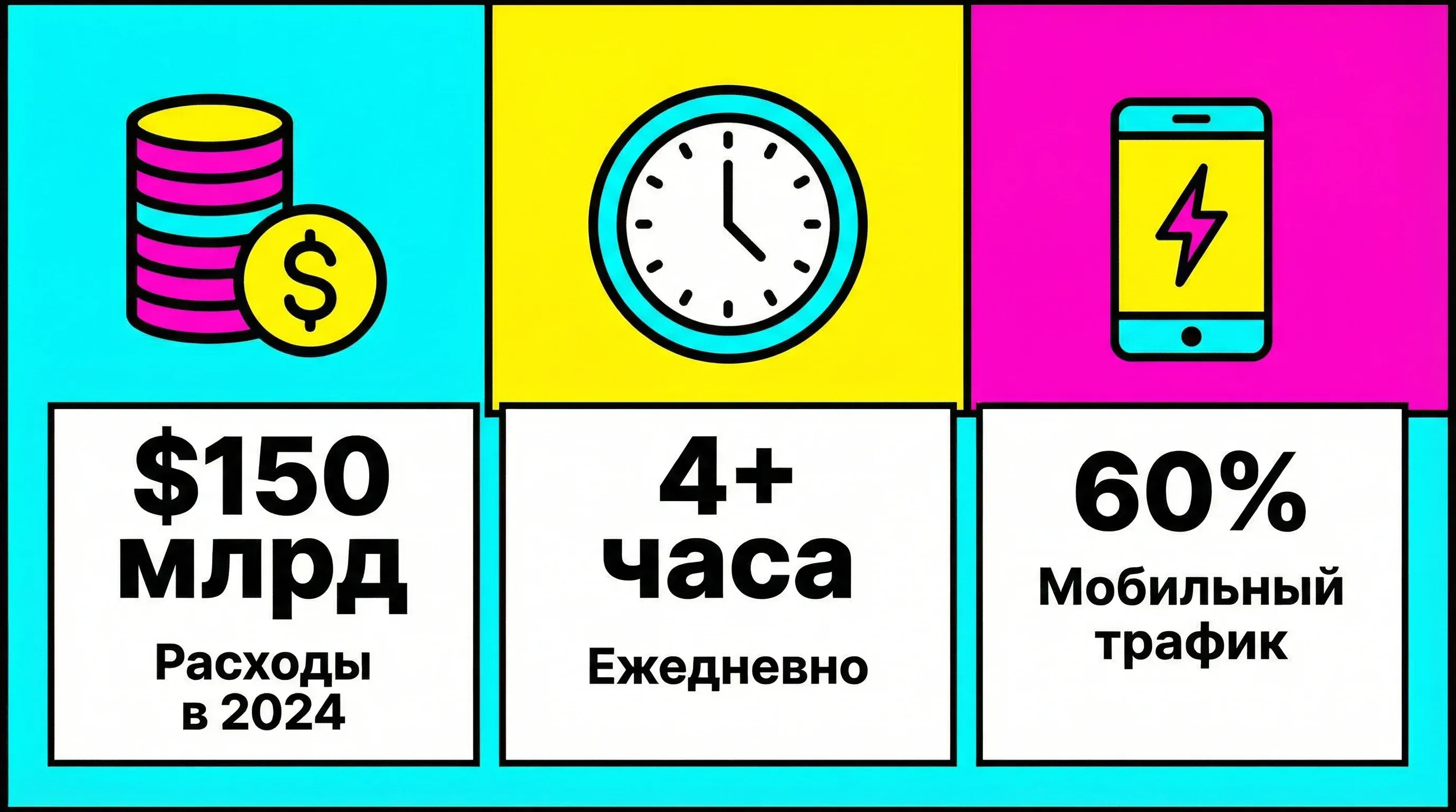 Рынок мобильных приложений продолжает расти. По данным Statista, в 2024 году глобальные потребительские расходы на мобильные приложения достигли $150 млрд — рост на 15% по сравнению с предыдущим годом. Пользователи проводят в приложениях более 4 часов ежедневно, а более 60% интернет-трафика приходится на мобильные устройства. Для бизнеса это означает одно: если вас нет в смартфоне клиента — вы теряете деньги.