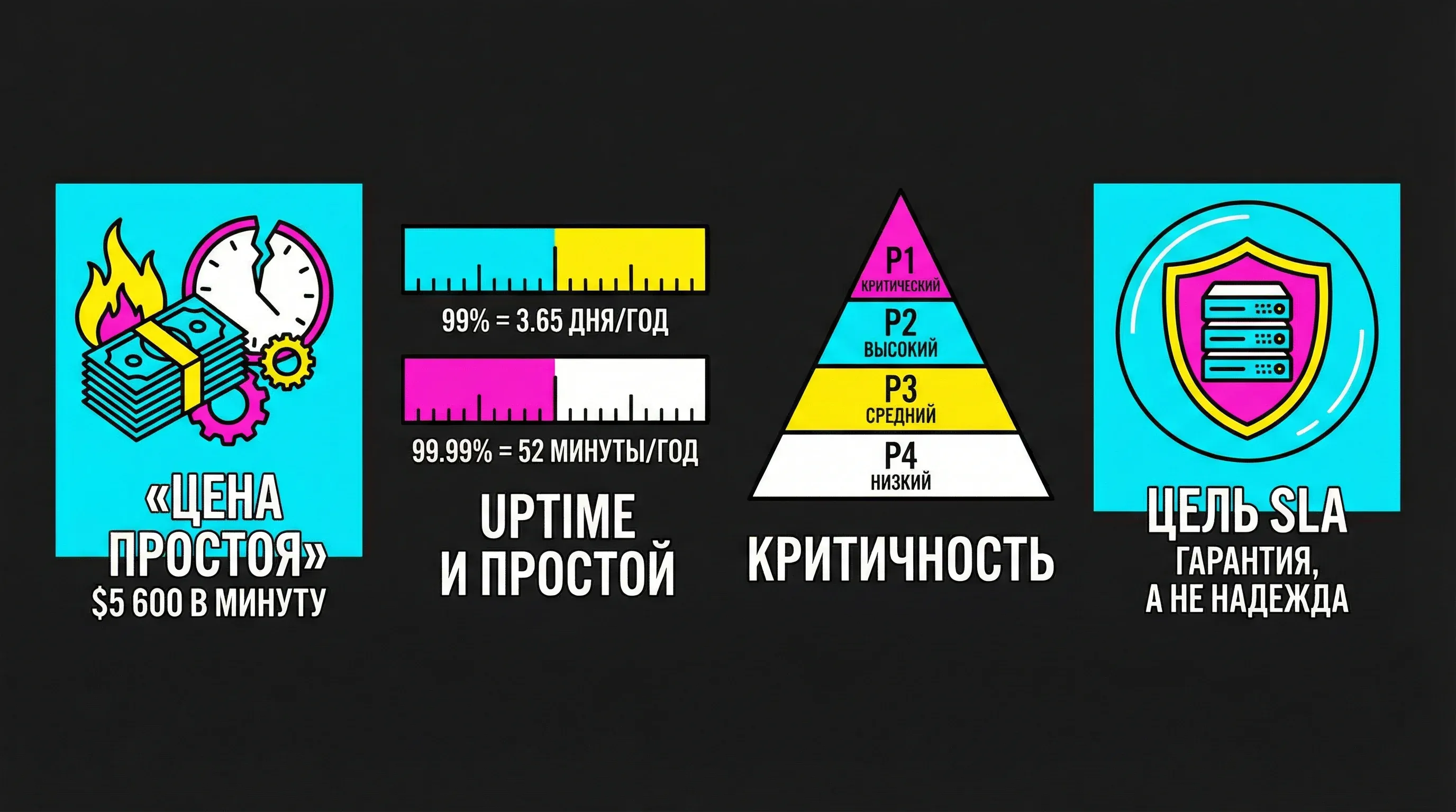 - SLA — не гарантия вечной работы. Это соглашение о том, как быстро проблемы будут решены, а не обещание, что их не будет.