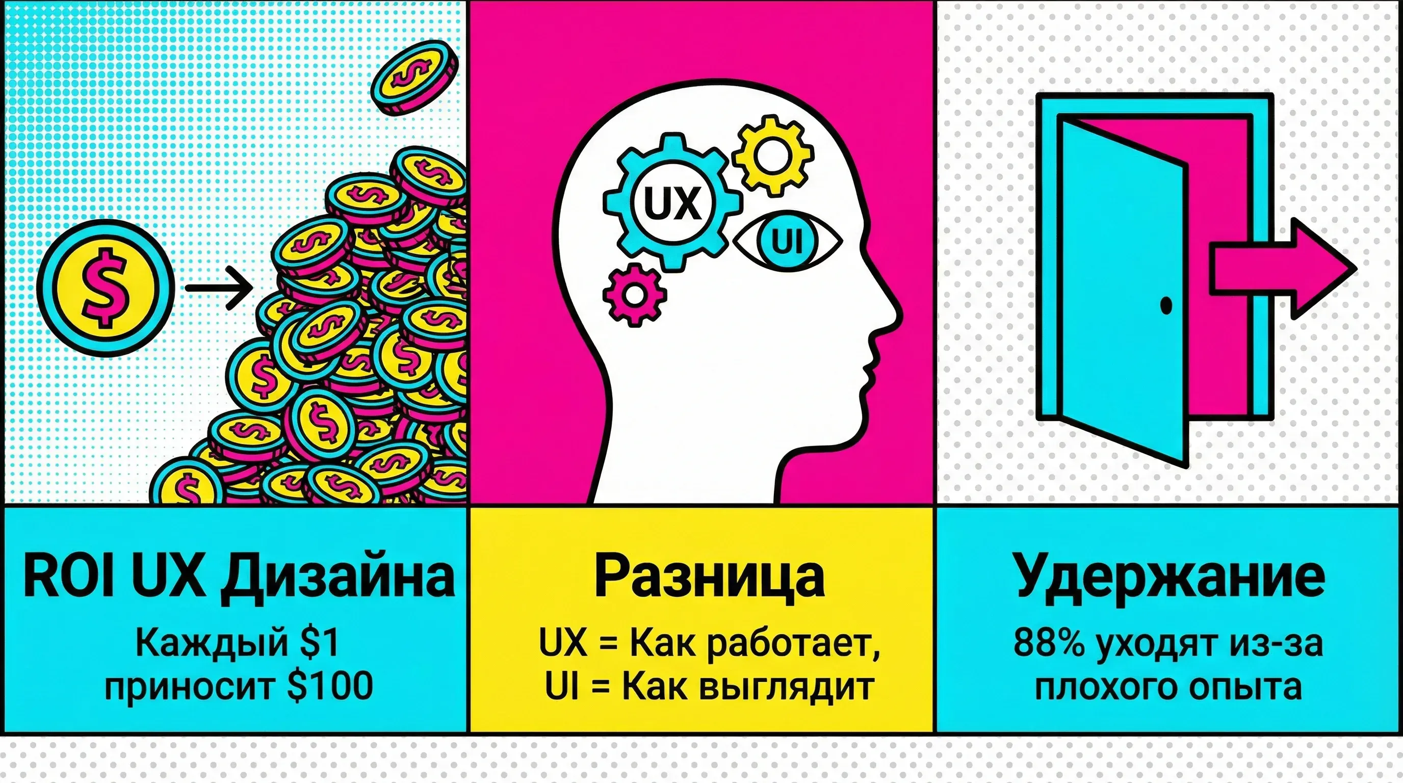 UX и UI дизайн — это не расходы, а инвестиции. Хороший дизайн повышает конверсию, снижает затраты на поддержку, увеличивает retention и формирует лояльность к бренду.